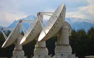 (八ヶ岳をバックに勇壮に並ぶ電波望遠鏡)