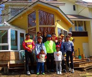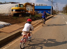 おにぎりの買出しに行ってきました。子供たちもペンション前にあるMTBミニコースを