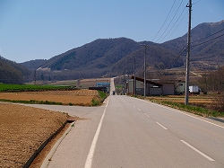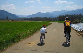 (八ヶ岳をバックに記念撮影) (のどかな農道を走ります)