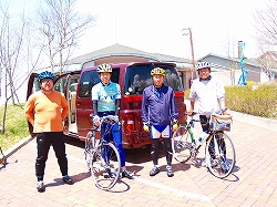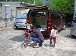前日の宿で自転車の車庫が屋外だったのが不安で、自転車は全部、車の中に保管して