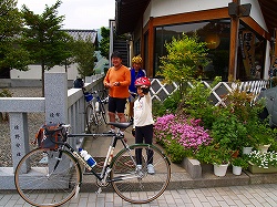 散歩しておりました。おいしい朝食後、記念写真を撮って出発。ご主人の見送りを受け