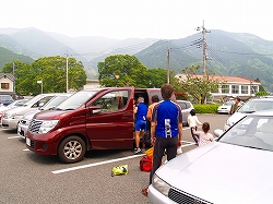 (山荘に到着 登山者の車が多くありました) (駐車場にて昼食)