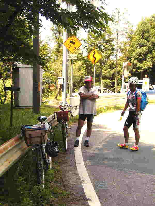 (千代姫荘にて、市川氏のランドナー)          (柴石峠の途中にて)