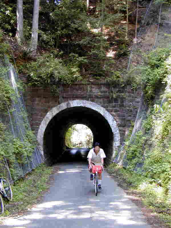 ローチに入ると木立に囲まれ涼しくなる。程なく与良木峠に到着。トンネルの向こう側