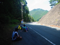昼食をとり1時30分、大知野隧道に向けて出発。6kmほどの上り坂だが斜度も