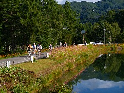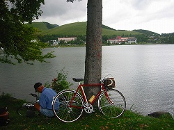 (蓼科湖早朝ポタ) (早朝ポタは小山サイクル店主の昭和40年生まれのトーエイで参加)