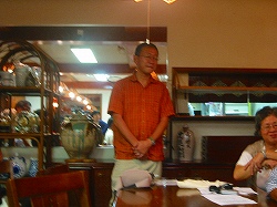 夜の夕食会の後、白鳥氏の講演や楽しい抽選会がありました。皆さん欲しがっていた。