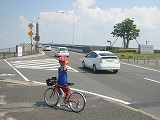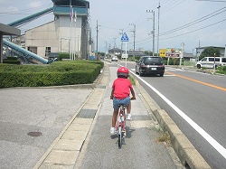 サイクリングロードが無く、国道の歩道を慎重に進みます。遠くからも確認できる