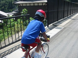 に坂を上ります。32×24に入れてがんばりますが、最後は親父の押しに助けられて無事