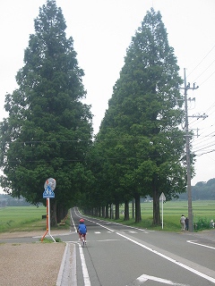 (左:奥琵琶湖にて 右:立派な並木道を通る:マキノにて)