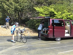 逆方向から一周してきたようで、車の周辺で帰り支度をしていました。私たちは天竜