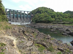 道がつづき対向車に気を使いながら進んでいきます。七色ダムではダムの上から