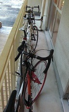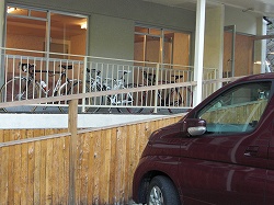 (今晩のお宿) (自転車はベランダに) (夕食はお腹一杯いただきました)