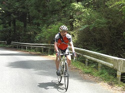 ありませんが、路肩が狭いのでちょっとした上りでは歩道を使いながら距離を