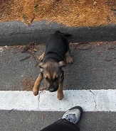 (無名峠の途中の九十九折れの家から子犬が寄ってきました、家の奥には討ち取られた猪が)