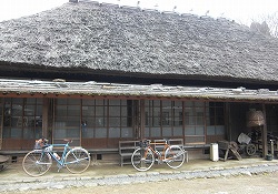 冬には冷たく感じます。11時30分ごろ目的地の茅葺屋敷に到着、囲炉裏端で地元のおば