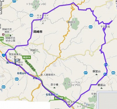 藤川→桜形→千万町(茅葺屋敷)→千万町坂→萩坂峠→赤坂→藤川 約60km