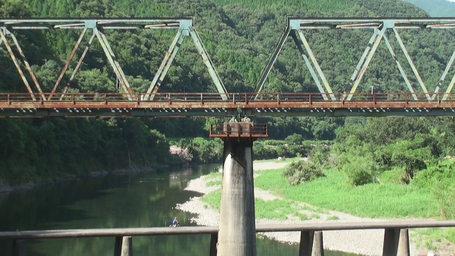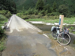大正の町を出発後、「里川沈下橋」は橋が落ちていましたが、現代の橋で対岸に渡り、わき道を