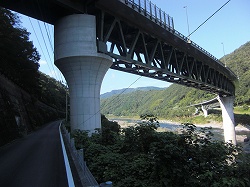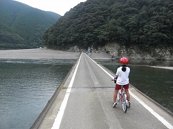 コース取りなど、そのつど走りながら教えていきます。そのうち「高樋沈下橋」に到着。今回は