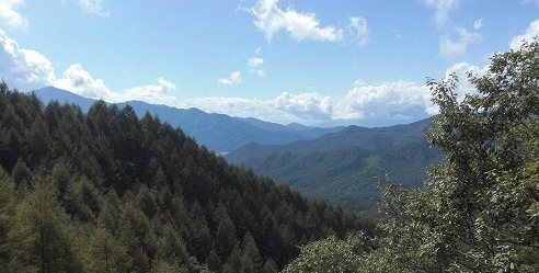て上りだす。途中からクリスタルラインの林道に入り、ひと尾根越えるかたちで清里方面に