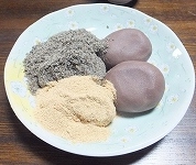 (店の名物「かんから餅」と「しの田うどん」)