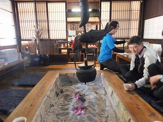 出発して1時間30分いつもの茅葺屋敷に到着。早い到着でしたのでゆっくり囲炉裏端で美味しい