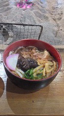 (いつもの囲炉裏端で美味しい うどん 五平餅 をいただきました)