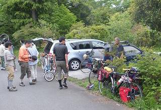さて、当日集合時間の30分前に到着、すでに参加者の方々が皆さんの自転車を観察して話が弾んで