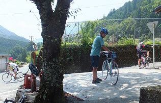 門桁の廃校となった小学校前で峠前の小休止。12時過ぎの本日のメインの山住峠に個人アタック。