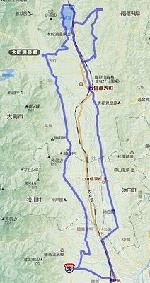 穂高〜大町温泉郷〜木崎湖〜美馬〜松川〜穂高 約80km