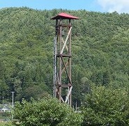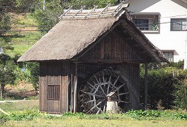 (美馬地区にて 蕎麦引きの水車小屋 木製の火の見やぐら リンゴの露天販売)