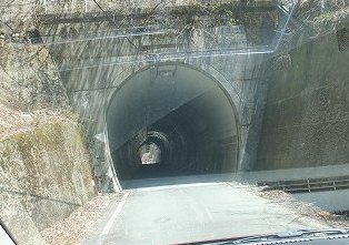 (左:見ノ越トンネル 右:1年半の通行止めは解除されたが、路面は荒れているので慎重に下ります)