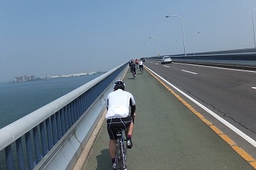 琵琶湖大橋の手前の道の駅でソフトクリーム休憩をして大橋を超えていきます。ここらあたりが出発からちょうど100km、