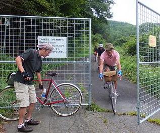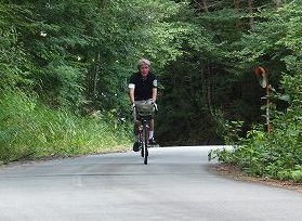 昼食後は木崎湖に戻り、湖を一周するように走りながら、目的の小熊黒沢林道に入ります。いきなりの急坂に
