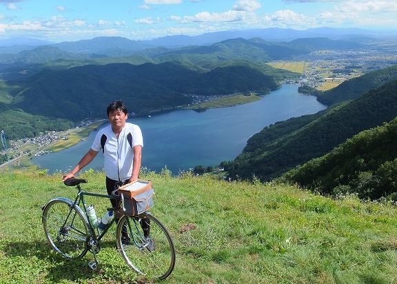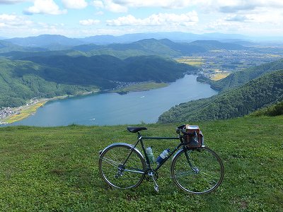 (小熊黒沢林道 パラグライダー出発エリアにて 木崎湖を望む)