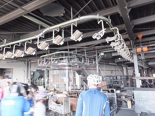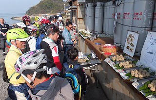 途中、伊予亀岡駅近く越智新瓦産業で、美味しい「いりこめしおにぎり」の差し入れをいただき、また瓦工場の見学を