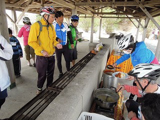 できなかった長女と一緒に受付します。出発前に今日のコース「はまかぜ海道」の案内があり、参加人数40人