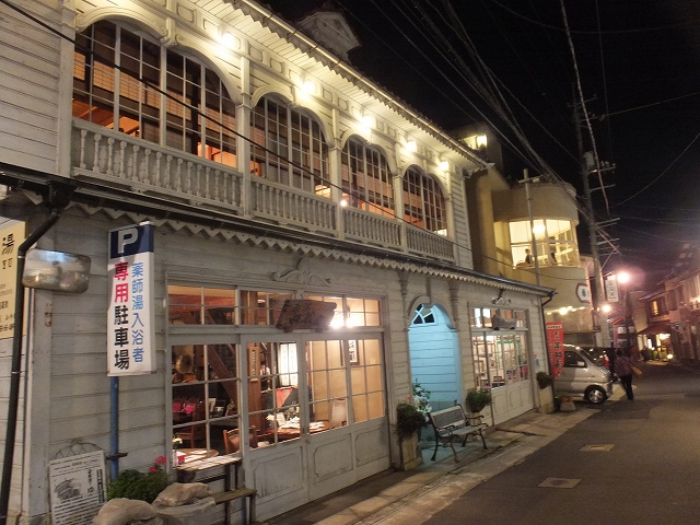 (ライトアップされた薬師湯はノスタルジックのムード満点)
