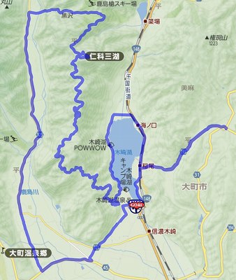 美麻→木崎湖→小熊黒沢林道→鹿島→大町温泉