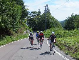 向かいます。牛首峠までは集落の中を走りますが、結構な勾配で調子の上がらない自分は最後尾で峠に向かう。