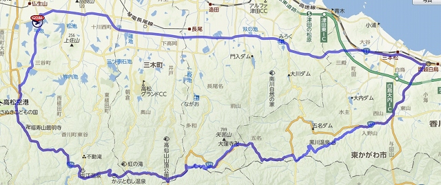 仏生山公園〜道の駅「しおのえ」〜大窪寺〜中尾峠〜東かがわ〜道の駅「みろく」〜