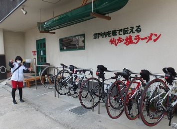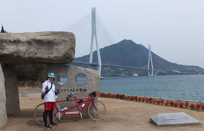 (大三島道の駅「サイクリストの聖地碑」にて)