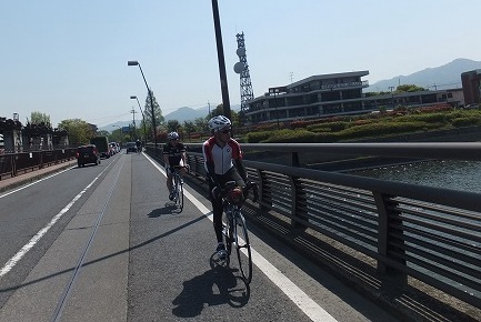 小休止後、瀬田川沿いを宇治方面に下ります。ここもロケーションが良いが、交通量が多い。16kmほど下って、宇治田原に向かっていよいよ
