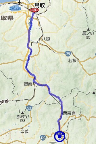 岡山県美作市大原〜志度坂峠〜智頭〜鳥取市 約60km
