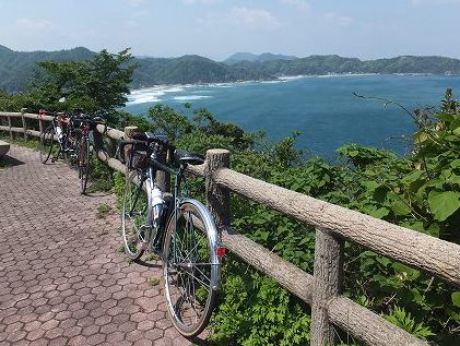 海岸線沿いの道、景色は良いですがアップダウンが多く大変でした。