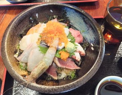 (宮本武蔵生家の前にあった食堂) (たこ焼きの具材ををフライパンで一気に焼いたような食べ物)