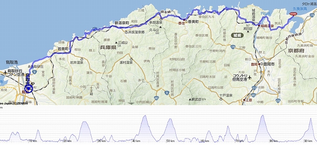 スタートして県境の志度坂峠を越えれば、鳥取県。そこから鳥取市までは、下り基調の行程です。途中の智頭で旧街道に