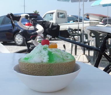 猛暑の中、カキ氷を食べにポタリング。