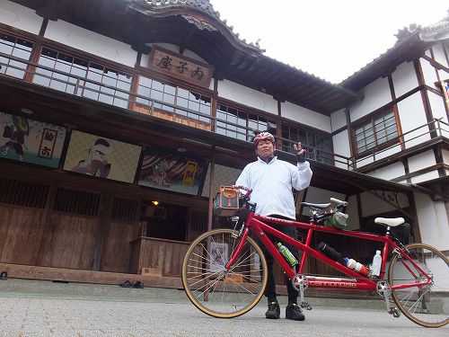 2台のタンデム(1台は4人乗り)で愛媛県南予の古い町並みが残る地区をポタリング。
