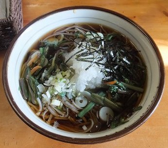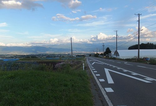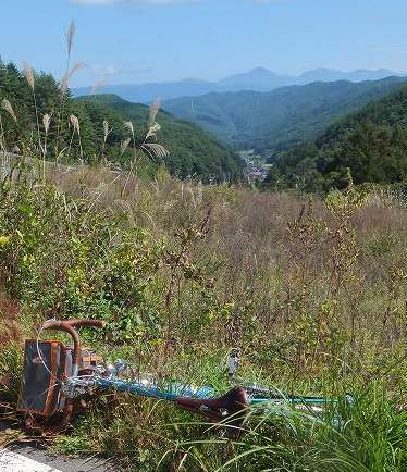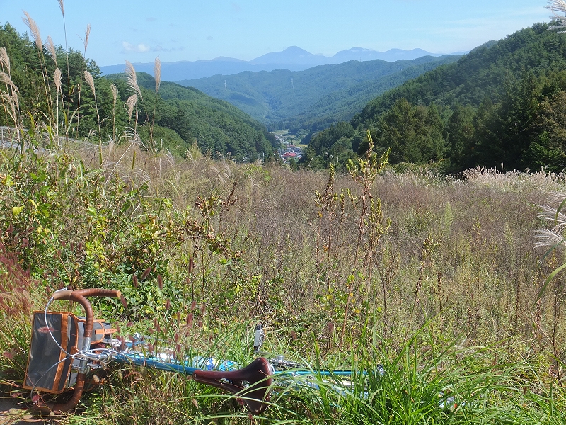 (牛首峠登坂途中 眼下に小野集落、正面に蓼科山を望む)